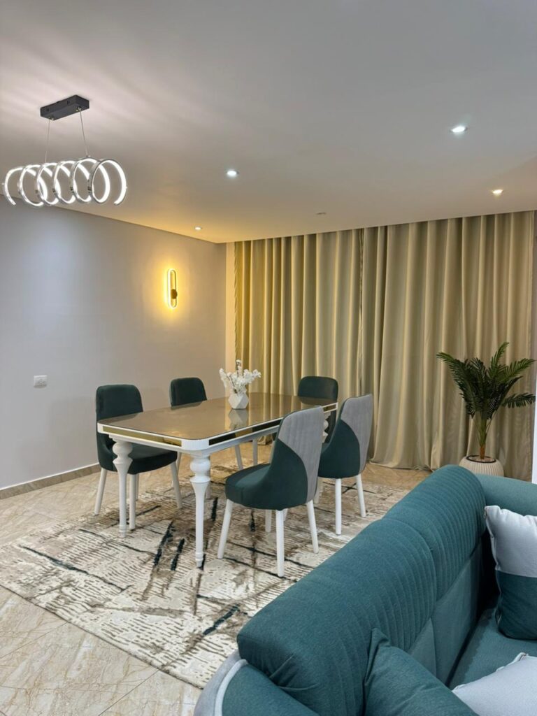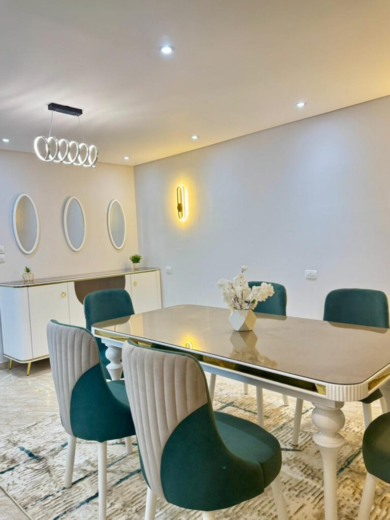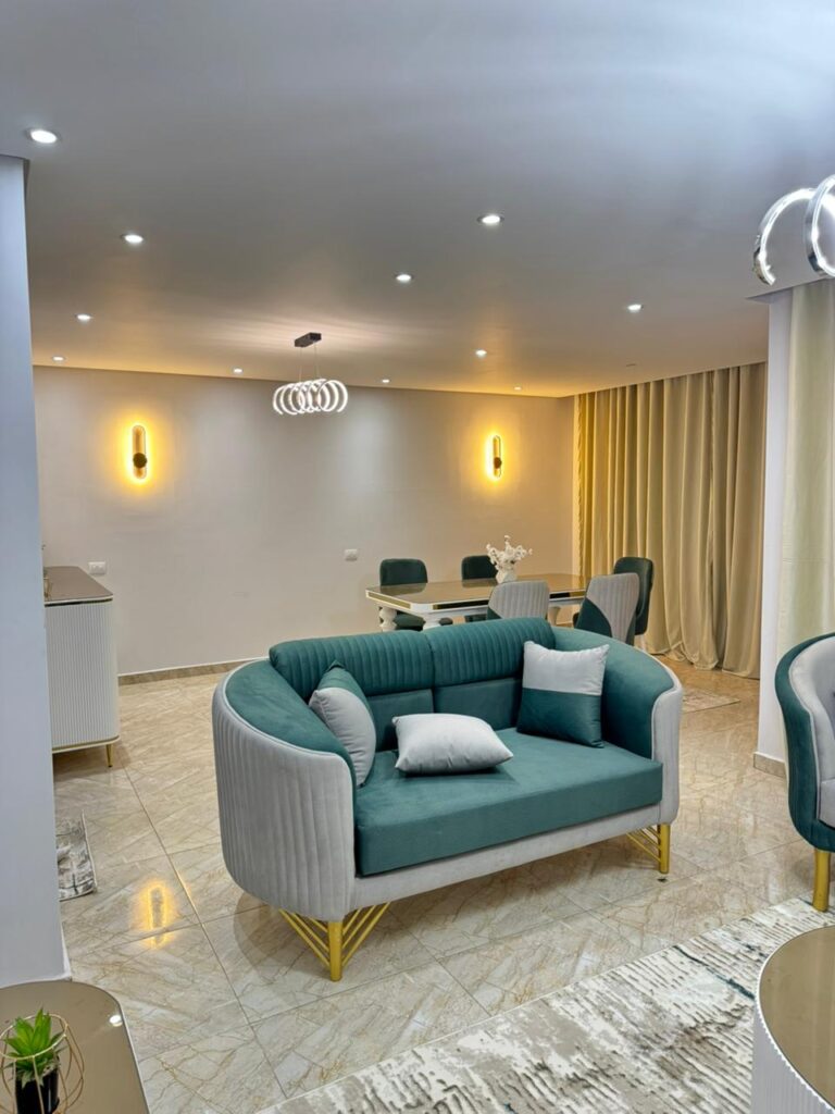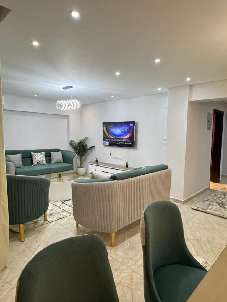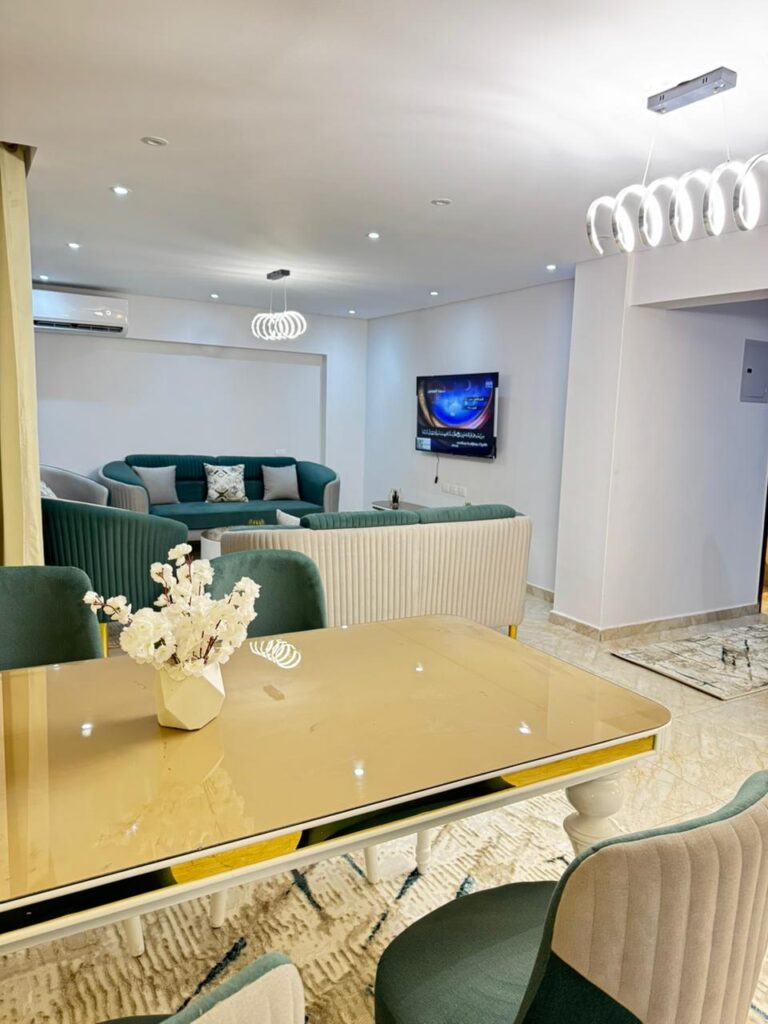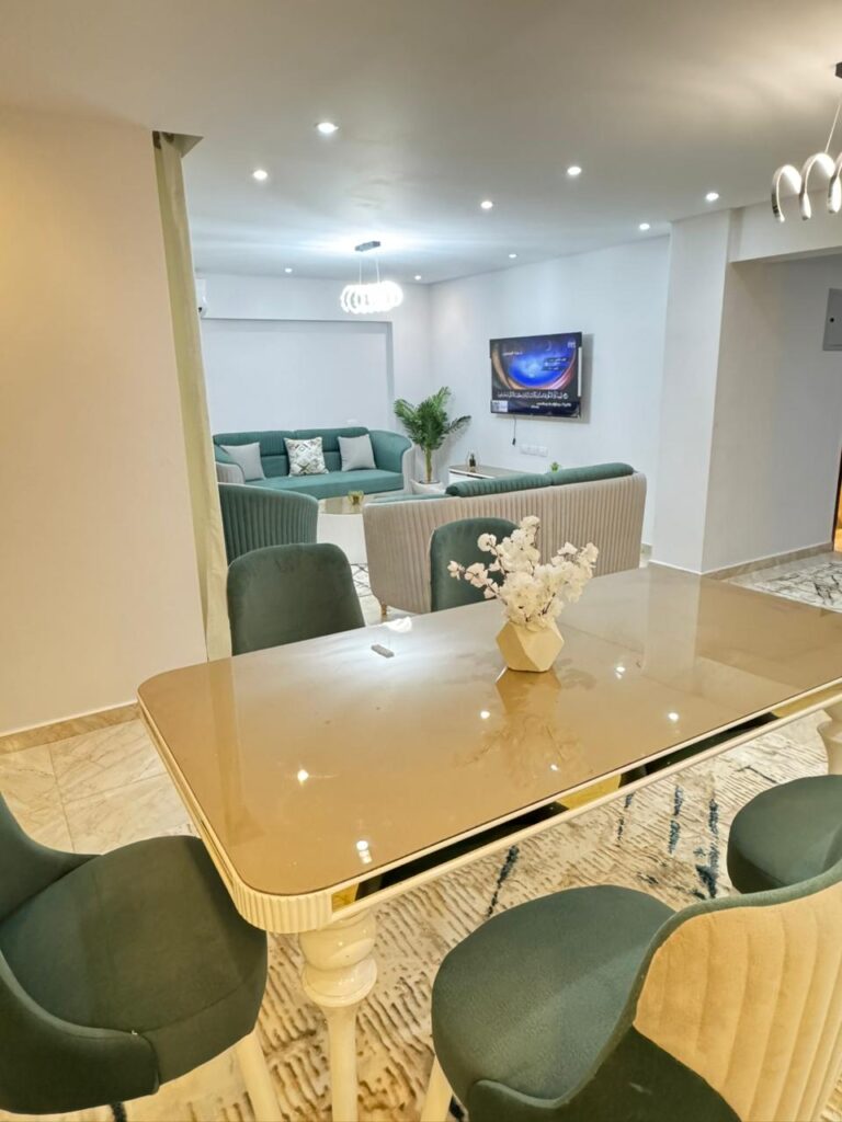 شقة مميزة مكيفة بالكامل، مفروشة فرش مودرن جديد كليًا، وتشطيب راقٍ التفاصيل:….